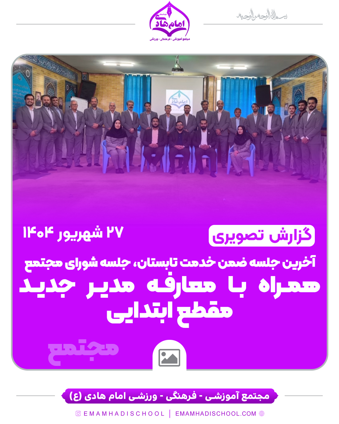 📸گزارش تصویری | آخرین جلسه ضمن خدمت تابستان، جلسه شورای مجتمع همراه با معارفه مدیر جدید مقطع ابتدایی