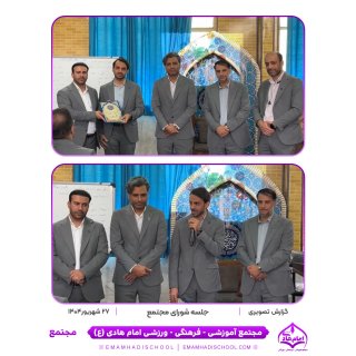 در پایان این نشست، مراسم معارفه مهندس خدامی به عنوان مدیر مقطع ابتدایی (دوره اول و دوم) مجتمع انجام شد. ایشان با ابراز قدردانی از اعتماد مدیران، بر تلاش خود برای ارتقای کیفیت آموزشی و تربیتی در مقطع ابتدایی تأکید کردند.