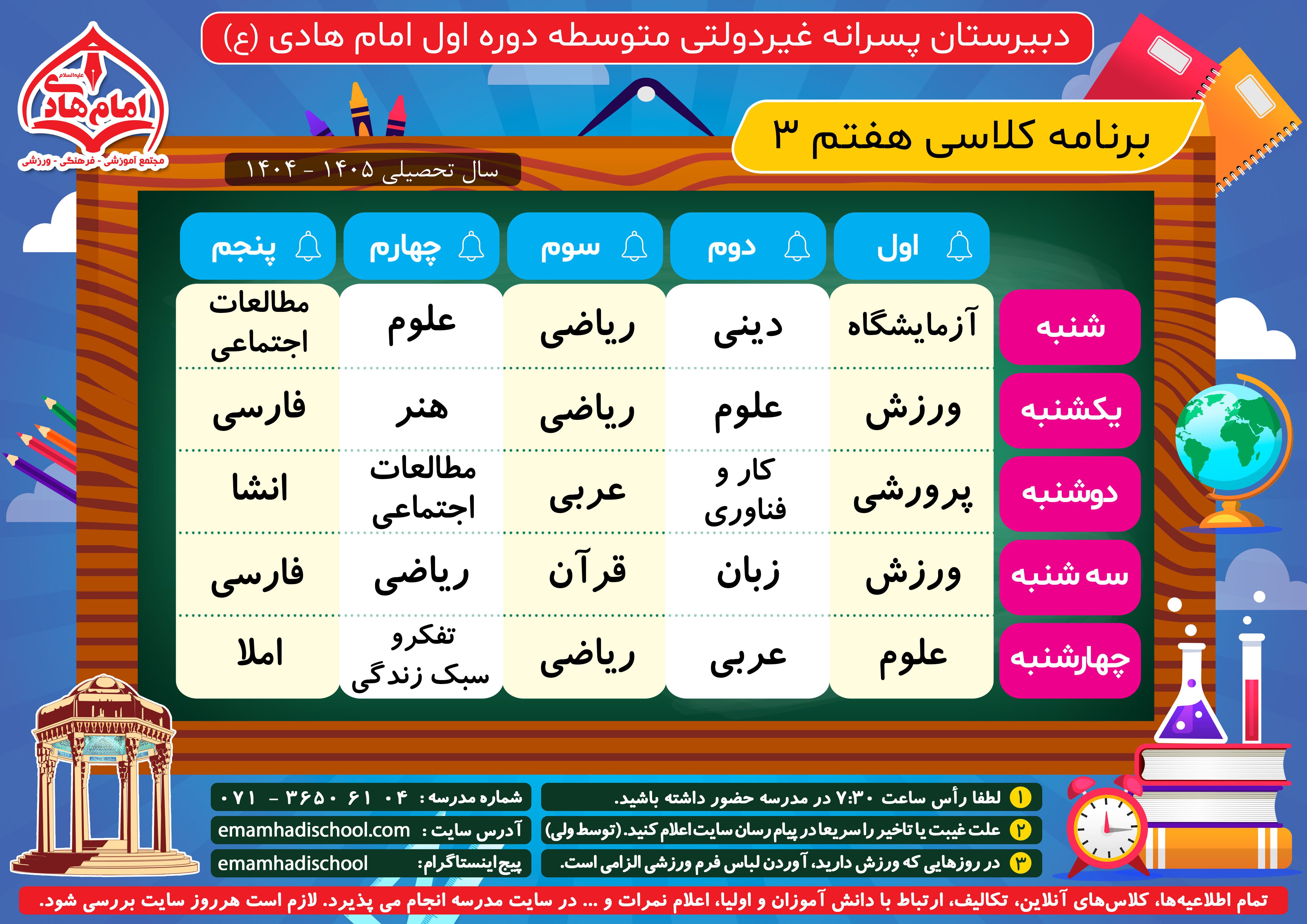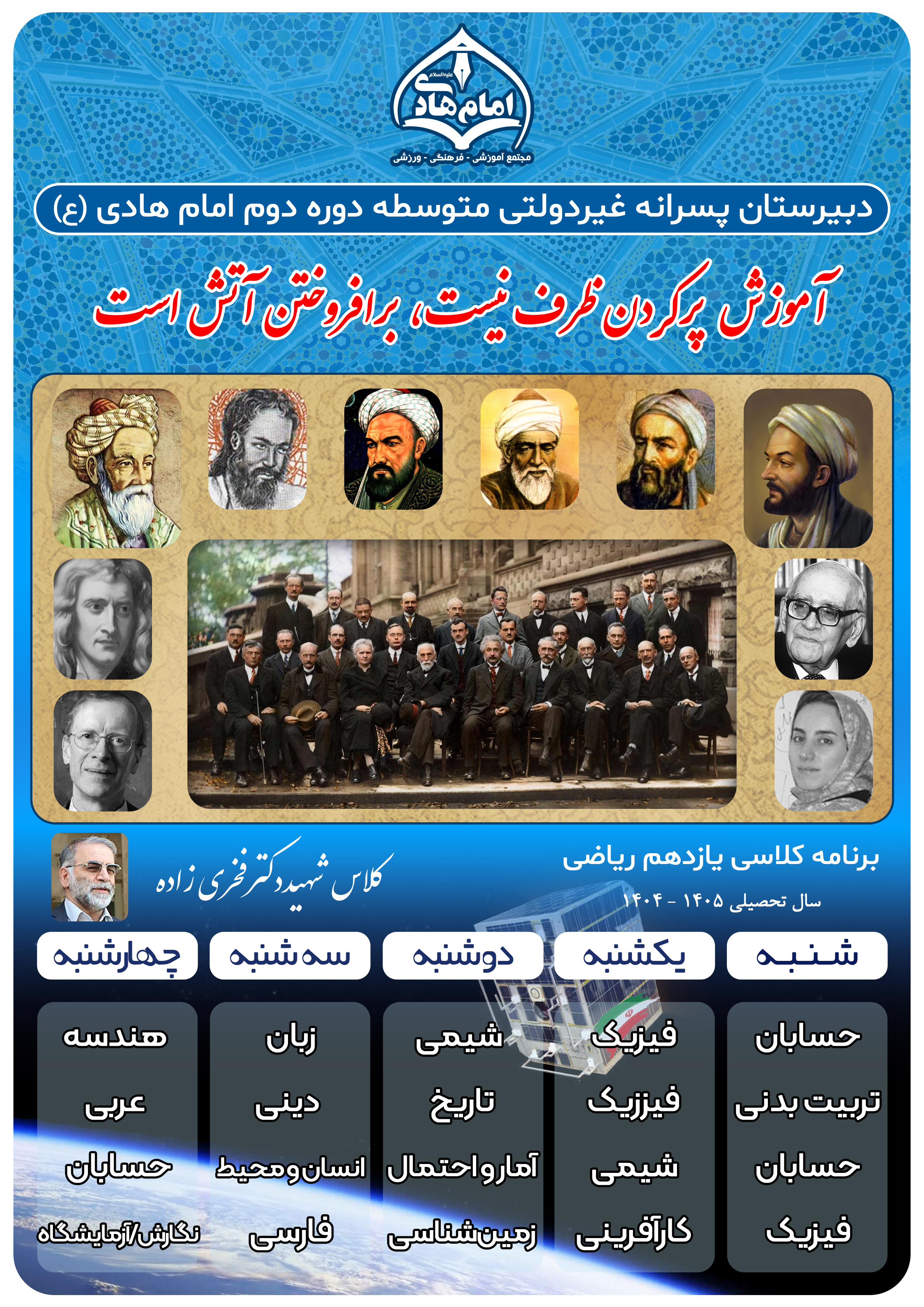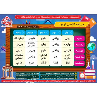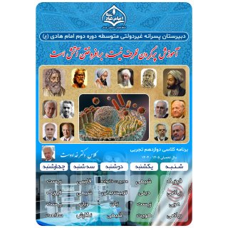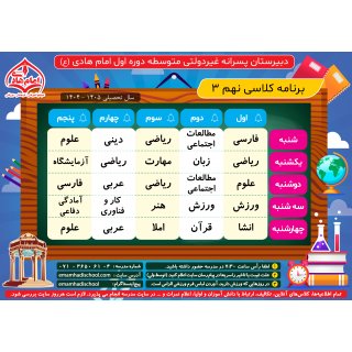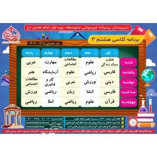رویدادهای عمومی ثانوی ۶ ۲۶۹۸ ۲ ماه پیش ۳۴ برنامه کلاسی ابتدایی - متوسطه اول - متوسطه دوم منتشر شد! خلاصه : به پیوست مراجعه کنید گالری تصاویر : × عنوان تصویر محبوبه همیری ۲ ماه پیش سلام وقتتون بخیر و شادی ،ممنونم از زحمات شما ، برنامه کلاسی متوسطه اول ، به قدری ریز هست که اصلا خوانا نیست اگه محبت کنین هر کلاسی رو جدا و خوانا بفرستین ممنون میشم ، خدا قوت ممنونم از لطف و زحمات شما بیشتر 4 0 استیکر پاسخ برای ویرایش باید ابتدا به عنوان کاربر به سایت وارد شده باشید. برای درج پاسخ باید ابتدا به عنوان کاربر به سایت وارد شده باشید. امیرحسین ثانوی ۲ ماه پیش محبوبه همیری سلام وقتتون بخیر و شادی ،ممنونم از زحمات شما ، برنامه کلاسی متوسطه اول ، به قدری ریز هست که اصلا خوانا نیست اگه محبت کنین هر کلاسی رو جدا و خوانا بفرستین ممنون میشم ، خدا قوت ممنونم از لطف و زحمات شما سلام و عرض ادب قطعا فردا این کار انجام میشه، و گذاشتن این برنامه به این شکل به منظور اگاهی دانش آموزان از برنامه کلاسی بوده است. بیشتر 1 0 استیکر پاسخ برای ویرایش باید ابتدا به عنوان کاربر به سایت وارد شده باشید. برای درج پاسخ باید ابتدا به عنوان کاربر به سایت وارد شده باشید. محبوبه همیری ۲ ماه پیش ممنونم از لطف شما بیشتر 1 0 استیکر پاسخ برای ویرایش باید ابتدا به عنوان کاربر به سایت وارد شده باشید. برای درج پاسخ باید ابتدا به عنوان کاربر به سایت وارد شده باشید. امیرحسین ثانوی ۲ ماه پیش محبوبه همیری ممنونم از لطف شما خواهش میکنم انجام وظیفست بیشتر 1 0 استیکر پاسخ برای ویرایش باید ابتدا به عنوان کاربر به سایت وارد شده باشید. برای درج پاسخ باید ابتدا به عنوان کاربر به سایت وارد شده باشید. Ali miri ۲ ماه پیش سلام وقت بخیر . 🥰🥰🥰ممنونم💙💙 بیشتر 1 0 استیکر پاسخ برای ویرایش باید ابتدا به عنوان کاربر به سایت وارد شده باشید. برای درج پاسخ باید ابتدا به عنوان کاربر به سایت وارد شده باشید. امیرحسین ثانوی ۲ ماه پیش Ali miri سلام وقت بخیر . 🥰🥰🥰 ممنونم💙💙 خواهش میکنم انشالله موفق باشید بیشتر 0 0 استیکر پاسخ برای ویرایش باید ابتدا به عنوان کاربر به سایت وارد شده باشید. برای درج پاسخ باید ابتدا به عنوان کاربر به سایت وارد شده باشید. برای درج دیدگاه باید ابتدا به عنوان کاربر به سایت وارد شده باشید.
