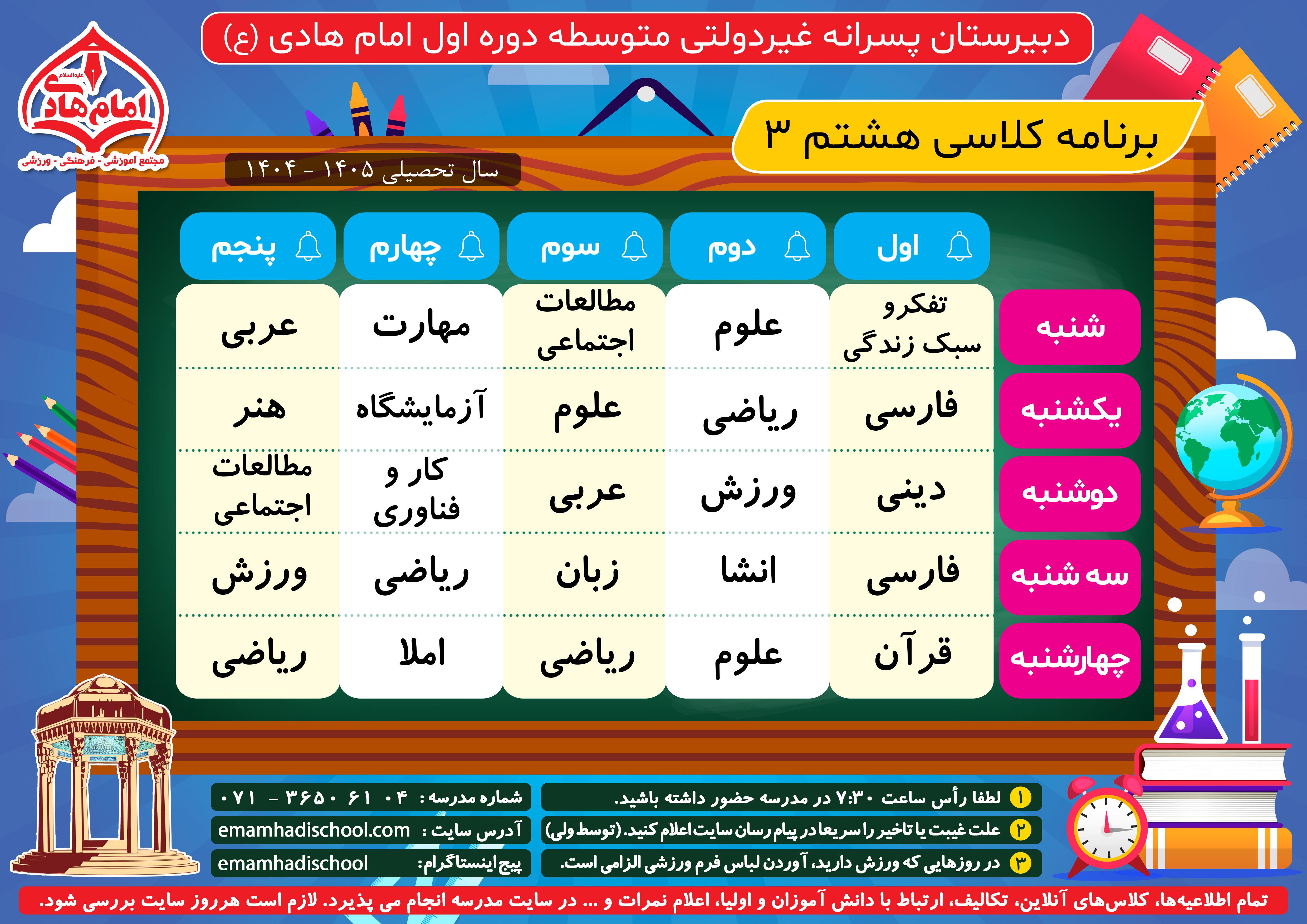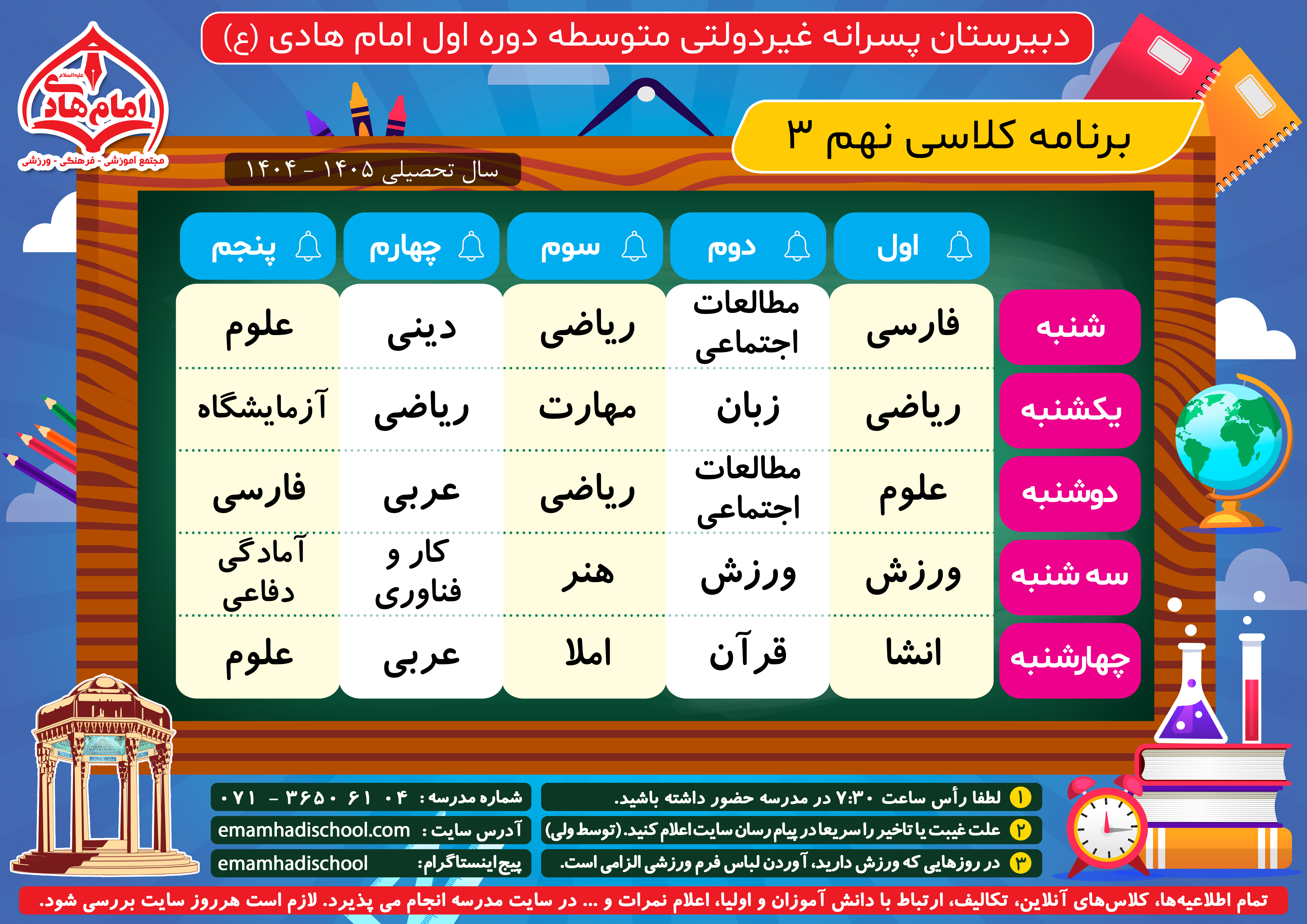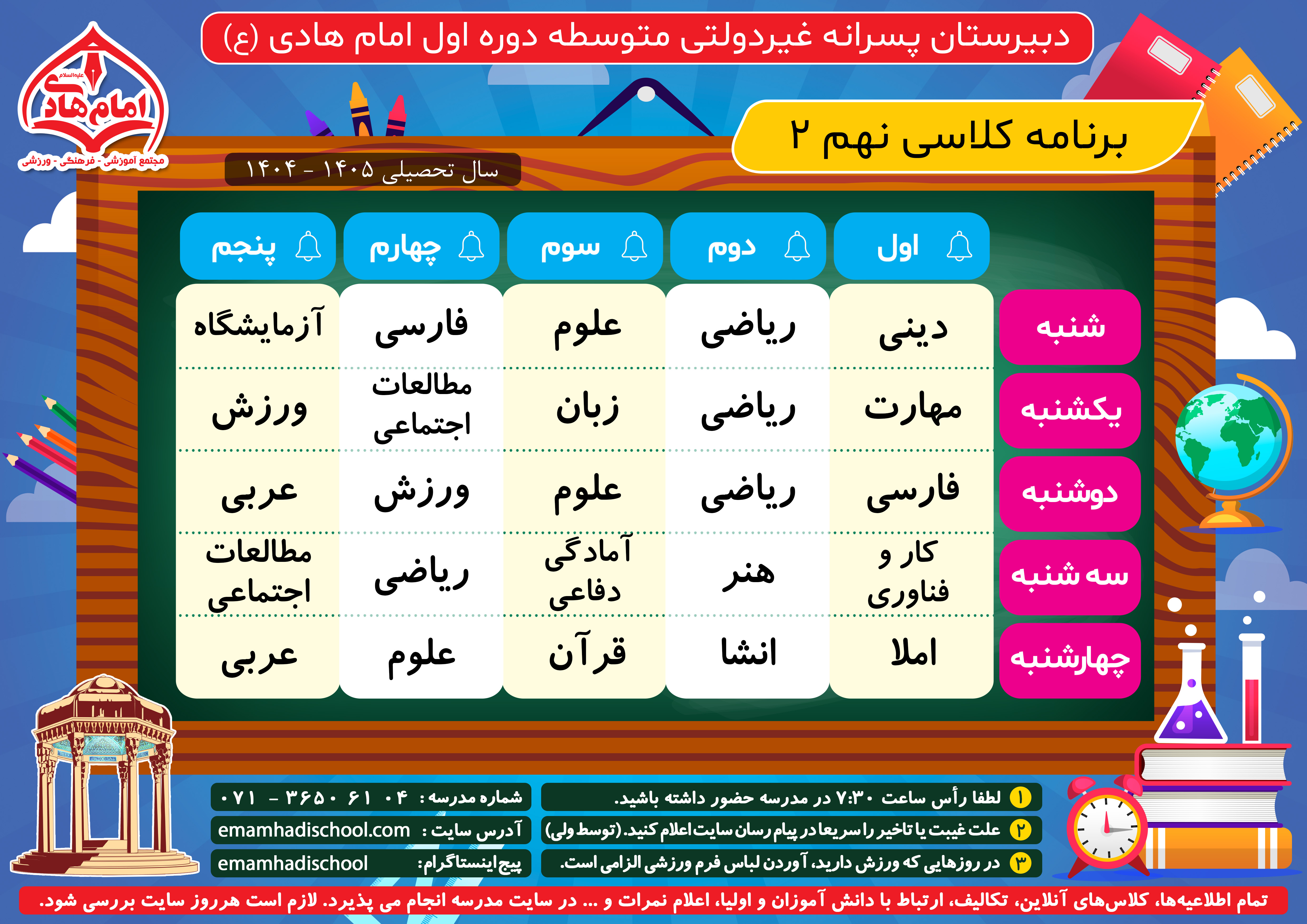 رویدادهای عمومی ثانوی ۶ ۲۶۹۸ ۲ ماه پیش ۳۴ برنامه کلاسی ابتدایی - متوسطه اول - متوسطه دوم منتشر شد! خلاصه : به پیوست مراجعه کنید گالری تصاویر : × عنوان تصویر محبوبه همیری ۲ ماه پیش سلام وقتتون بخیر و شادی ،ممنونم از زحمات شما ، برنامه کلاسی متوسطه اول ، به قدری ریز هست که اصلا خوانا نیست اگه محبت کنین هر کلاسی رو جدا و خوانا بفرستین ممنون میشم ، خدا قوت ممنونم از لطف و زحمات شما بیشتر 4 0 استیکر پاسخ برای ویرایش باید ابتدا به عنوان کاربر به سایت وارد شده باشید. برای درج پاسخ باید ابتدا به عنوان کاربر به سایت وارد شده باشید. امیرحسین ثانوی ۲ ماه پیش محبوبه همیری سلام وقتتون بخیر و شادی ،ممنونم از زحمات شما ، برنامه کلاسی متوسطه اول ، به قدری ریز هست که اصلا خوانا نیست اگه محبت کنین هر کلاسی رو جدا و خوانا بفرستین ممنون میشم ، خدا قوت ممنونم از لطف و زحمات شما سلام و عرض ادب قطعا فردا این کار انجام میشه، و گذاشتن این برنامه به این شکل به منظور اگاهی دانش آموزان از برنامه کلاسی بوده است. بیشتر 1 0 استیکر پاسخ برای ویرایش باید ابتدا به عنوان کاربر به سایت وارد شده باشید. برای درج پاسخ باید ابتدا به عنوان کاربر به سایت وارد شده باشید. محبوبه همیری ۲ ماه پیش ممنونم از لطف شما بیشتر 1 0 استیکر پاسخ برای ویرایش باید ابتدا به عنوان کاربر به سایت وارد شده باشید. برای درج پاسخ باید ابتدا به عنوان کاربر به سایت وارد شده باشید. امیرحسین ثانوی ۲ ماه پیش محبوبه همیری ممنونم از لطف شما خواهش میکنم انجام وظیفست بیشتر 1 0 استیکر پاسخ برای ویرایش باید ابتدا به عنوان کاربر به سایت وارد شده باشید. برای درج پاسخ باید ابتدا به عنوان کاربر به سایت وارد شده باشید. Ali miri ۲ ماه پیش سلام وقت بخیر . 🥰🥰🥰ممنونم💙💙 بیشتر 1 0 استیکر پاسخ برای ویرایش باید ابتدا به عنوان کاربر به سایت وارد شده باشید. برای درج پاسخ باید ابتدا به عنوان کاربر به سایت وارد شده باشید. امیرحسین ثانوی ۲ ماه پیش Ali miri سلام وقت بخیر . 🥰🥰🥰 ممنونم💙💙 خواهش میکنم انشالله موفق باشید بیشتر 0 0 استیکر پاسخ برای ویرایش باید ابتدا به عنوان کاربر به سایت وارد شده باشید. برای درج پاسخ باید ابتدا به عنوان کاربر به سایت وارد شده باشید. برای درج دیدگاه باید ابتدا به عنوان کاربر به سایت وارد شده باشید.
