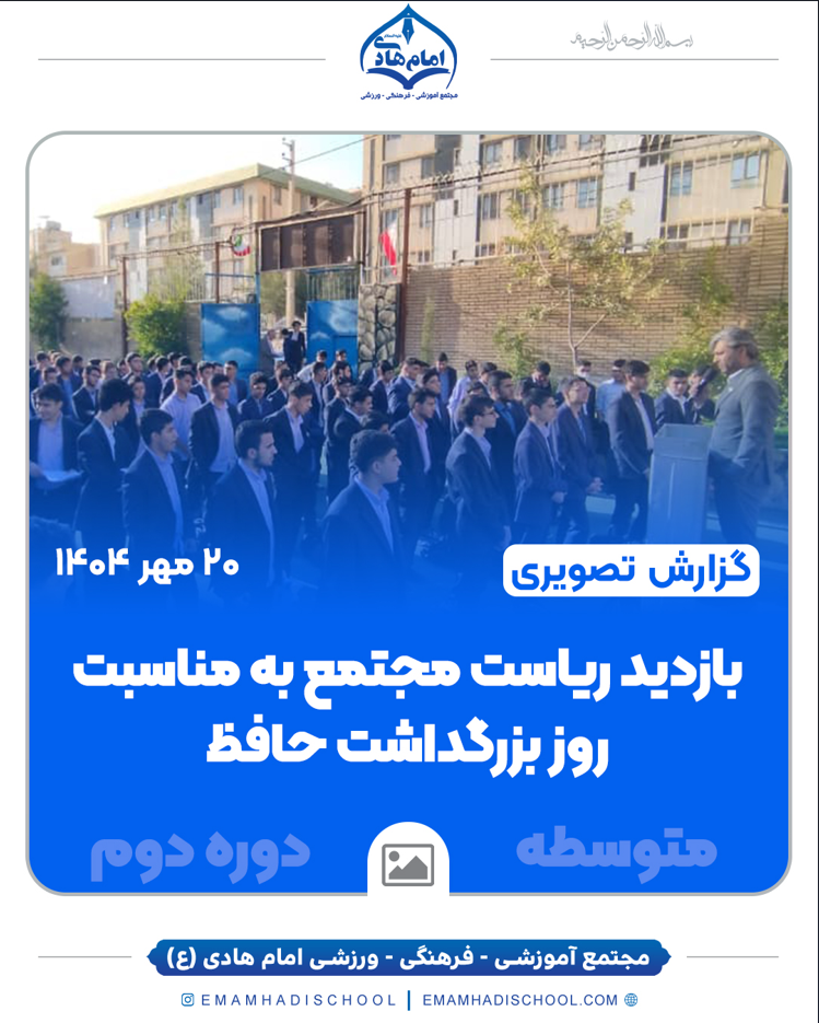 اردوی فرهنگی، گردشگری حافظیه به مناسبت روز بزرگداشت حافظبه مناسبت روز بزرگداشت شاعر بزرگ پارسیگوی، خواجه شمسالدین محمد حافظ شیرازی، اردوی فرهنگی و گردشگری دانشآموزان در فضایی سرشار از شعر، ادب و معرفت در حافظیه شیراز برگزار شد.دانشآموزان مقاطع مختلف تحصیلی با حضور در کنار آرامگاه لسانالغیب، با زندگی، اندیشه و اشعار جاودانه او آشنا شدند و زیبایی ادبیات فارسی را از نزدیک لمس کردند.